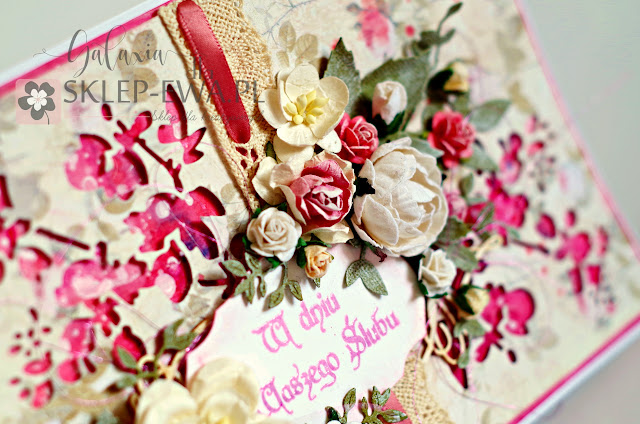 U mnie nadal na tapecie są kartki ślubne, więc jeszcze troszkę pozostanę w tym temacie. Tym razem przygotowałam kartkę dla kolegi z pracy, w nieco większym formacie A5. Rozmiar podyktowany był tym, by wszyscy z pracy mogli się wewnątrz podpisać, a w sumie i tak ledwo wystarczyło miejsca :)